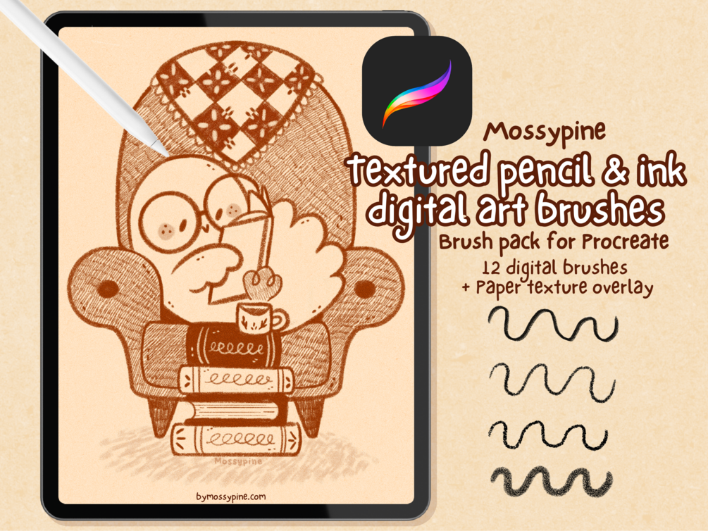 Mossypine textured pencil & lineart brushes for Procreate 🍄